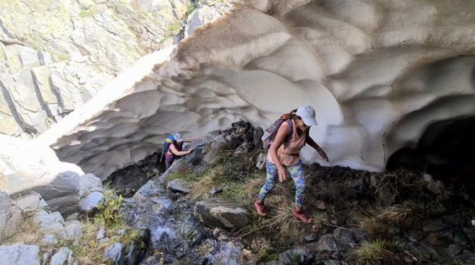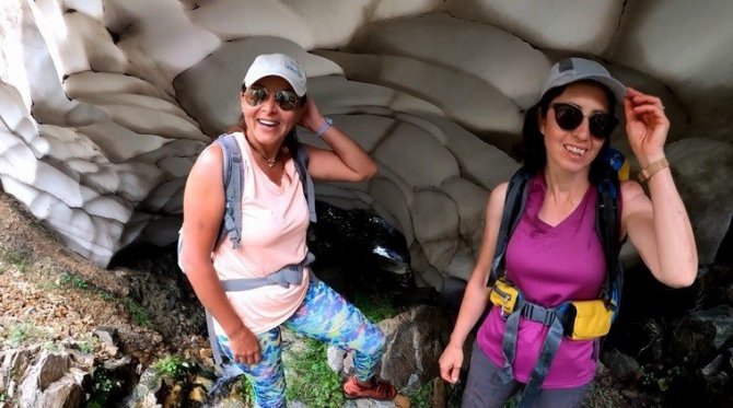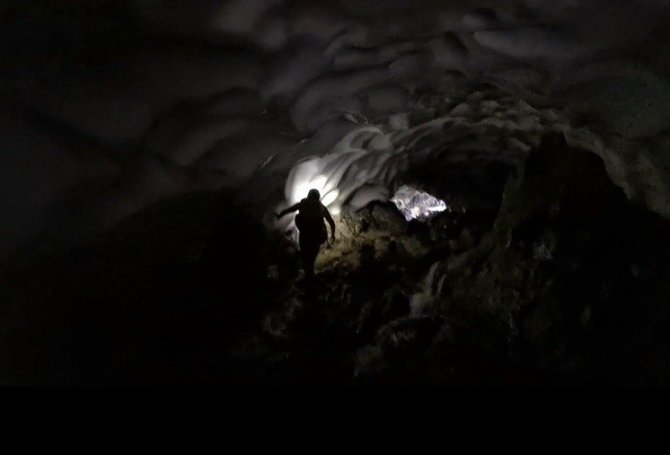 Uludağ'da dağcılar temmuz ortasında 50 metrelik buz tüneli buldu. Buz tünelinin içinden geçen dağcılar o anları kameraya kaydetti.
