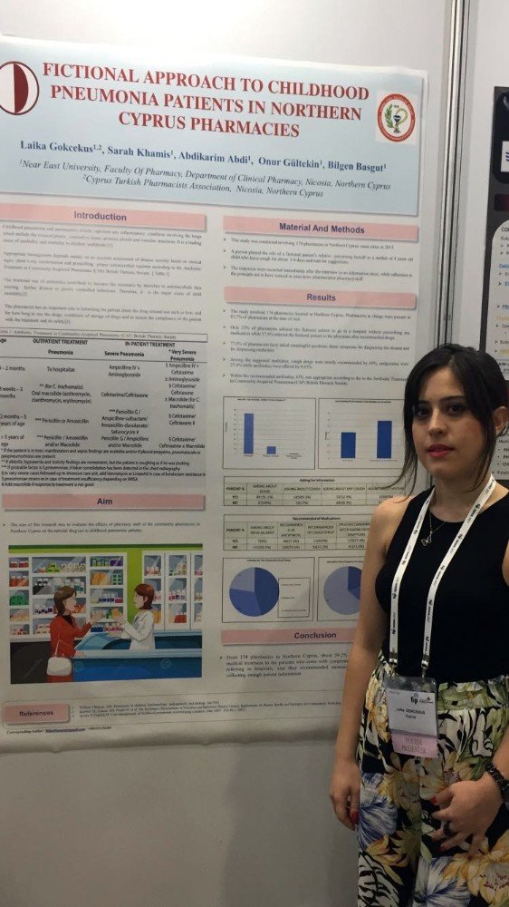 Yakın Doğu Üniversitesi Eczacılık Fakültesi Klinik Eczacılık Anabilim Dalı Başkanı Doç. Dr. Bilgen Başgut tarafından Kıbrıs Türk Eczacıları Birliği ile ortak yürütülen “KKTC’deki Eczacıların Kurgusal Pnömonili Çocuk Hastaya Yaklaşımları” çalışması 77. FIP Dünya Kongresi’nde sunuldu. Yakın Doğu Üniversitesi Eczacılık Fakültesi Öğretim Üyeleri Dr. Eczacı Laika Gökçekuş, Dr. Eczacı Abdikarim Abdi, Uzman Eczacı Sarah Khamis ve Uzman Eczacı Onur Gültekin’in araştırma ekibinde yer aldığı çalışma, aynı zamanda Kıbrıs Türk Eczacılar Birliği üyesi olan Dr. Eczacı Laika Gökçekuş tarafından kongrede başarıyla sunuldu. Genel hatlarıyla çalışma sırasında eczacıların yaklaşık yüzde 84’ünün hasta yakınına birebir danışmanlık hizmeti verdiği, eczacıların yaklaşık yüzde 80’inin hastalık belirtileri ile ilgili detaylı sorular sorduktan sonra reçetesiz satılabilen öksürük şurupları veya ateş düşürücü ilaçları önerirken, sadece yüzde 9’unun doktora yönlendirmeden antibiyotik önermesi gibi önemli konuların masaya yatırıldığı belirtildi. Eczacıların yüzde 40’ının ise hiç ilaç önermeden veya reçetesiz satılabilen ilaçlar önerdikten sonra hastayı hekime yönlendirmeleri gibi hayati konular üzerinde duruldu. Bu oranlarla KKTC’deki eczacıların hasta danışmanlığı ve özellikle reçetesiz antibiyotik verilmesi konusundaki hassasiyetini açıkça ortaya koydukları dile getirildi.