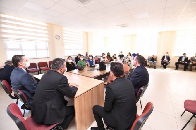 Yeni eğitim öğretim yılı hakkında öğretmenlerle sohbet eden Pursaklar Belediye Başkanı Ertuğrul Çetin, "Kitaplar Devletten Kırtasiyeler Belediyeden" kampanyası dâhilinde kırtasiye malzemesi hediye etti.
