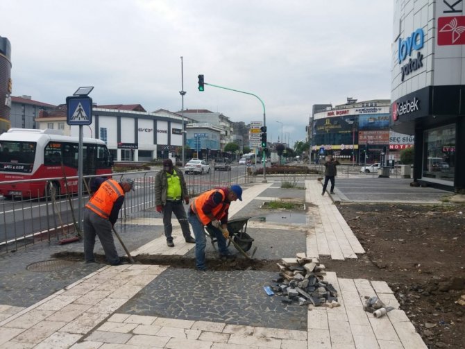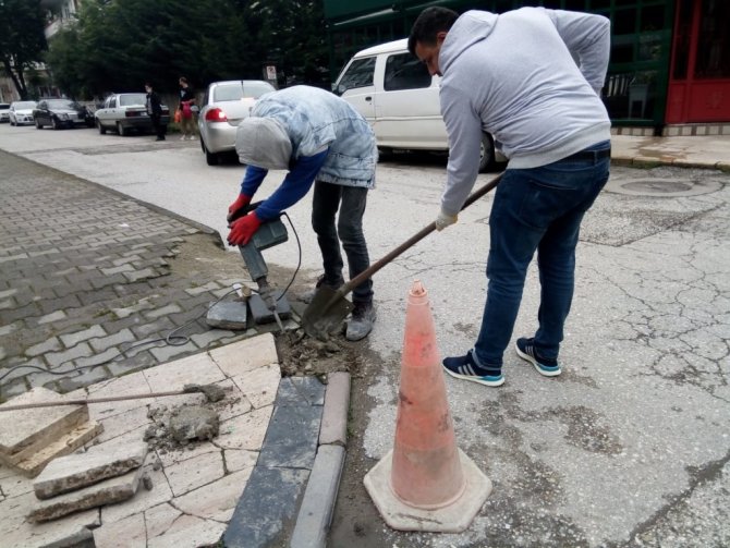DÜZCE(İHA) – Düzce Belediyesi Fen İşleri Müdürlüğü ekipleri yeni kaldırım yerleri kazandırma ve mevcut kaldırımların onarım çalışmalarını sürdürüyor.