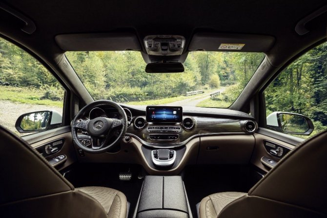 Tasarımcılar, güncel Mercedes-Benz binek otomobil modellerinin iç tasarım felsefesini yeni V-Serisi'ne uyarlamak için özel bir çaba sarf etti. Yeni V-Serisi'nin iç mekanı, markanın güncel tasarım anlayışını sürdürüyor. Yeni serinin arka bölümünde sunulan yüz yüze bakabilen ısıtmalı ve soğutmalı deri koltuklar, panoramik cam tavan seçeneği, katlanabilir masa ve bardaklıklar ile konfor ve ergonomi seviyesi bir üst noktaya taşınıyor. V-Serisi, sunmuş olduğu Tartufo Nappa Deri, Siyah Nappa Deri ve Bej Nappa Deri ile iç mekana modern bir görünüm kazandırıyor. Arka bölümde, kapı döşemelerinde ve ön konsolda uygulanan süslemeler de kabin içerisindeki modern ve zarif görünümü destekliyor. Sportif bir görünüme sahip türbin şeklindeki havalandırma ızgaraları ile 5 inç ekrana sahip gösterge paneli kullanıma sunuluyor. Yalınlaştırılan tasarım yaklaşımı sayesinde sürücüler, fonksiyonlara kolayca erişim sağlayabiliyor.