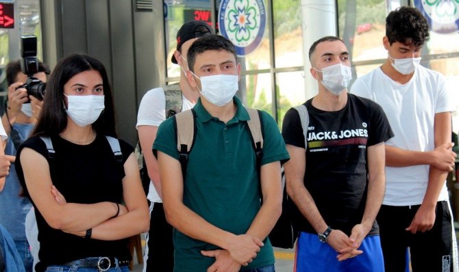 Muğla Sıtkı Koçman Üniversitesine kayıt yaptıracak öğrenciler, il protokolü tarafından otogarda çiçeklerle karşılandı.