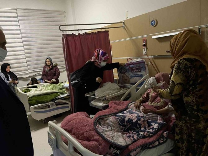Akçakale Belediye Başkanı Mehmet Yalçınkaya, hastanede doğan yılın ilk bebeklerini ziyaret ederek çeşitli hediyeler verdi.