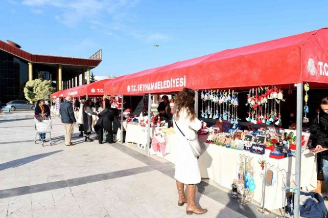 Yaşar Kemal Kültür Merkezi önündeki Seyhan Sanat Meydanı'nda kurulan "Yeni Yıl Pazarı"nda, Seyhanlı üreten kadınların göz nuru dökerek ürettiği hediyelik yeni yıl temalı ürünler görücüye çıktı. Meydanda kurulan stantlarda Kadın Dayanışma Merkezi'nde üretilen turunçgil, lavanta, spirulina ve yosun kokulu sabunlar, kiraz çiçeği ve turunçgil kolonyaları, her biri sanat eseri olan seramik ürünler ile SEYMER'lerde üretilen dekoratif ev ürünleri, yeni yıl temalı taş, seramik boyama ürünleri, dekoratif saksılarda çiçekler, çocuklar için eğlenceli armağanlar, el işi takılar halkın beğenisine sunuldu.