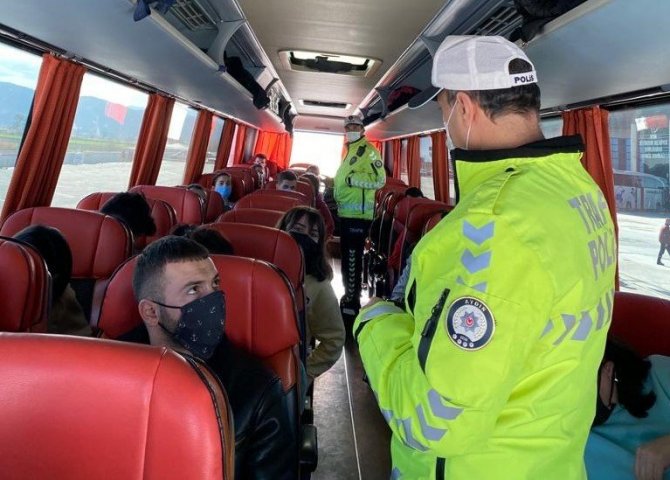 Aydın'da yeni yıl tatilini fırsat bilen vatandaşlar otobüs terminallerine akın etti. Şehirlerarası yolculukların artması ile birlikte Aydın'da Trafik Denetleme Şube Müdürlüğü ekipleri de otobüs terminalinde denetim gerçekleştirdi. Yeni yıl tedbirleri kapsamında denetimlerine devam eden ekipler, Aydın Büyükşehir Belediyesi Şehirlerarası Otobüs Terminali'nde hem yolcuları bilgilendirdi hem de otobüslerde kış lastiği kontrolü yaptı. Trafik akımı ve güvenliğinde aksamalar olmaması, vatandaşların trafik güvenliğinin sağlanması adına denetimlerin aralıksız devam edeceği öğrenildi.