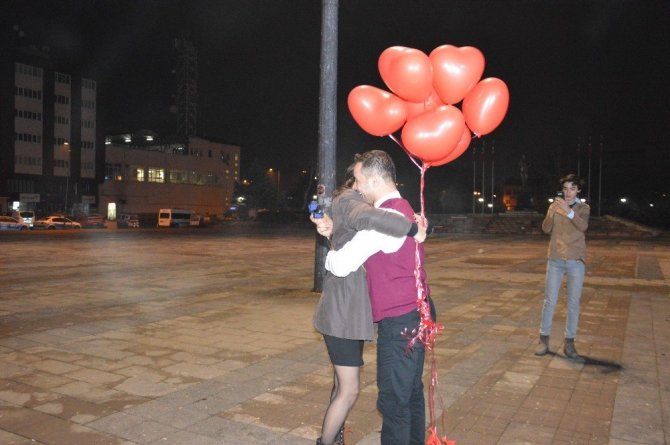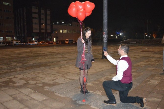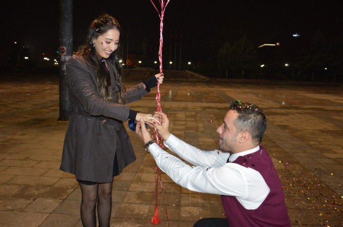 Kırıkkaleli genç yeni yılın ilk dakikalarına meydanda sevdiği kadına evlilik teklifi yaparak girdi.
