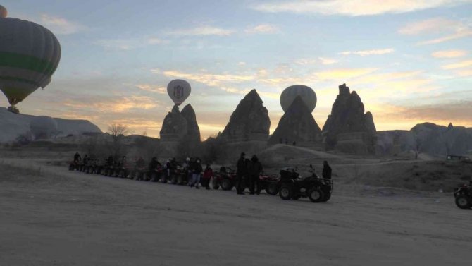 Tarihi ve kültürel dokusuyla yılda milyonlarca turist ağırlayan Kapadokya Bölgesi bu yılbaşında da doluluk oranı yüzde 100'ü buldu. Yeni yıla Kapadokya'da giren yerli ve yabancı turistler yılın ilk güneşini ve Kapadokya'yı gökyüzünden izleme imkânı buldu. Sabahın ilk saatlerinde havalanan sıcak hava balonuna binen Ayşe - Selahattin Şimşek çifti, "Bu bizim evli olarak geçirdiğimiz ilk yeni yılımız. Bizim için ayrı bir deneyim oldu. Hayallerimizi yeni yılın ilk gününde gerçekleştirmek çok güzel bir duygu. Yeni yılın ilk gününde bu tarihi anı birlikte yaşamak istedik. Yeni yıla böyle başlayarak sonuna kadar böyle devam etmeyi düşündük. Ürgüp'ün güzel manzarasında uyanmak istedik" şeklinde konuştu. Ankara'dan yeni yıl kutlamaları için Kapadokya'yı tercih eden Gülşah Bayraktar da, "Geçen yıl yaşadığımız kötülükleri bu yıl yaşamak istemiyoruz. İnşallah bu yıl her şey daha güzel olur. Mutluluk olur. Bol huzur olur" şeklinde konuştu,