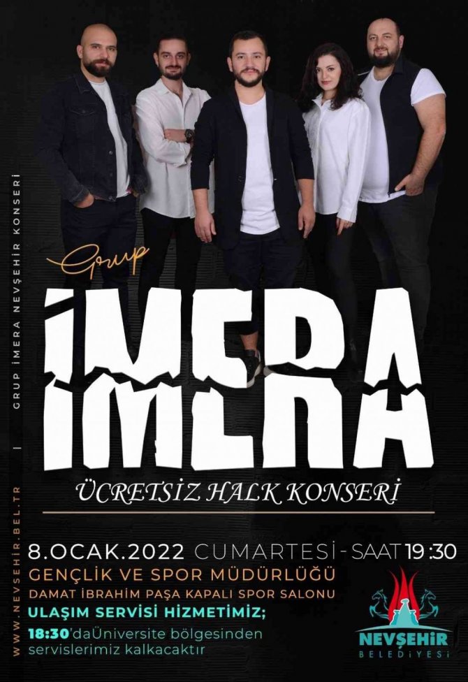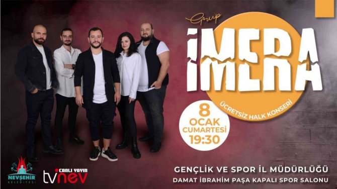 Nevşehir Belediyesi tarafından düzenlenen 2022 yılının ilk konserinde 8 Ocak akşamı sevilen müzik grubu İmera sahne alacak.