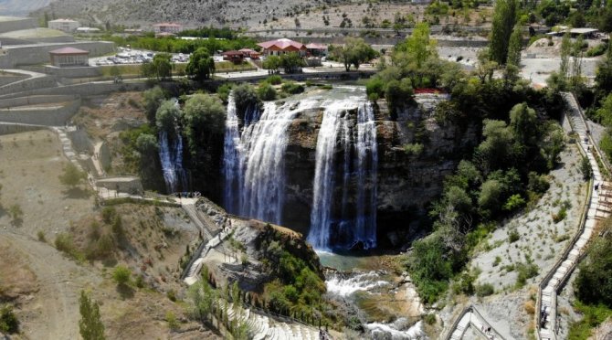 Yeniden ziyarete açılan Tortum Şelalesine bayramda ziyaretçi akını