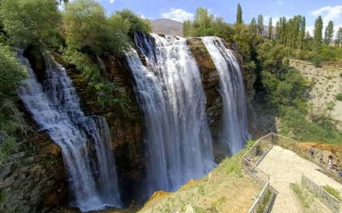Yılın her mevsiminde manzarasıyla ziyaretçilerini etkileyen ve dökülen suyun zerrecikler halinde uçuşmasıyla sürekli gökkuşağına benzer görüntü oluşturduğu Tortum Şelalesi, yerli ve yabancı turist akınına uğruyor.