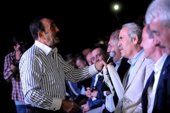 Bir ara sahneden inen Mustafa Keser, Bursa Büyükşehir Belediye Başkanı Recep Altepe ile birlikte şarkı söyledi.
