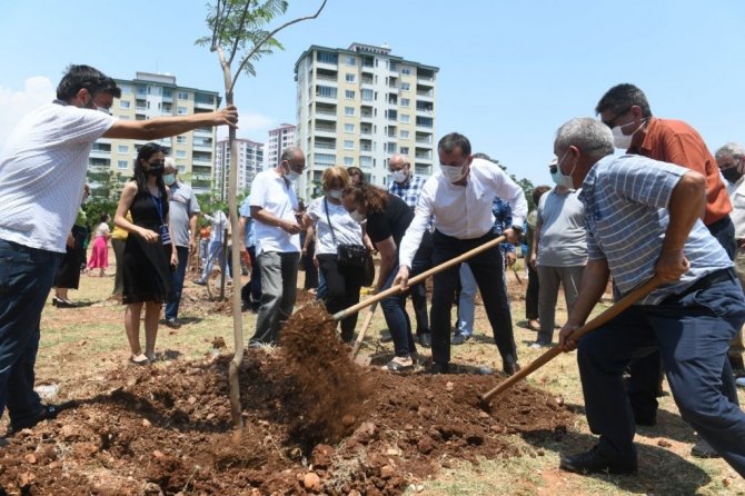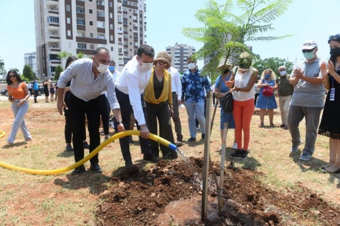 Konuşmanın ardından koruluğa jakaranda ağaçları dikildi.