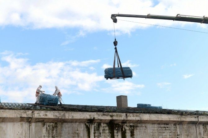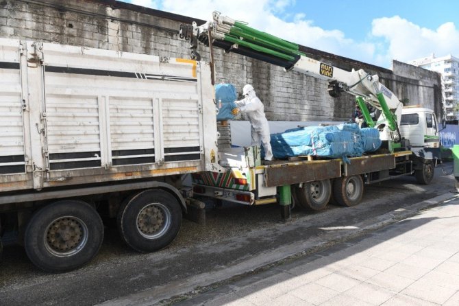 MERSİN (İHA) – Mersin'in merkez Yenişehir ilçesinde yıkılması planlanan bir binada kansere neden olabilen "asbestli malzeme" söküm işlemleri tamamlandı. Asbestli olduğu laboratuvar incelemelerinde belirlenen 20 ton malzeme prosedürlere uygun bir şekilde söküldükten sonra paketlenerek, bertaraf edilmek üzere lisanslı araçla Ankara'ya gönderildi.