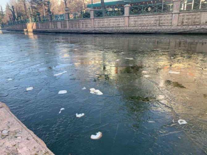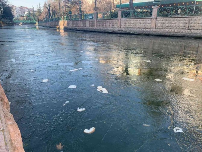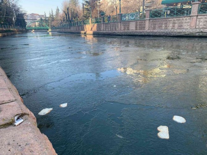 Eskişehir'in en önemli turizm değerlerinden olan Porsuk Çayı üzerinde sorumsuzca rastgele atılan ve donmuş buzlu zemin üzerine düşen ekmekler görüntü kirliliğine yol açıyor.