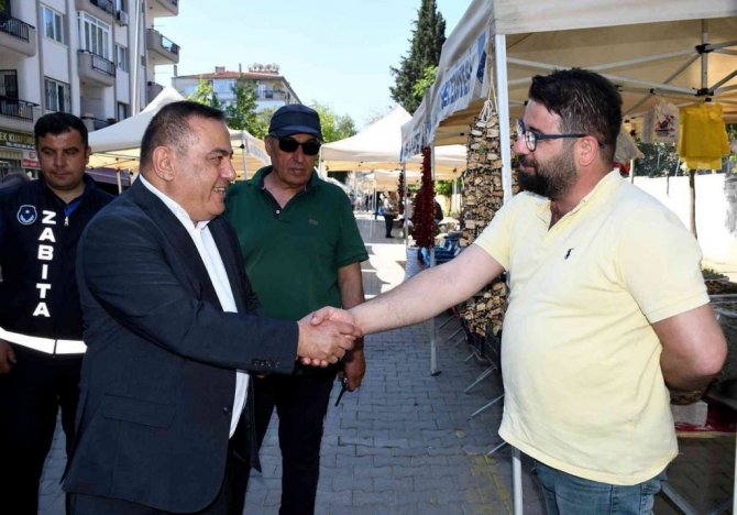 Kuşadası Belediye Başkan Yardımcısı Yusuf Atak ve belediye meclis üyeleri "Yöresel ve İyi Tarım Ürünleri Sokağı'nı" ziyaret ederek, pazar yerlerindeki...