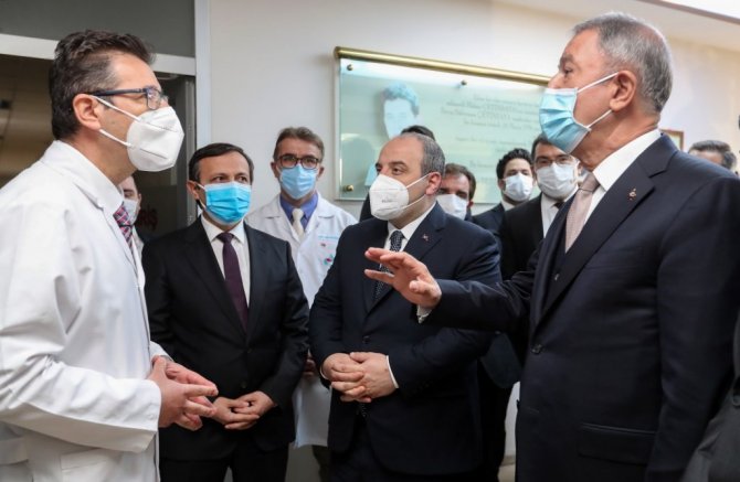 "Özellikle kan örneklerinde etkinlik parametrelerinde antikor oluşumu ve diğer parametrelere bakılarak inşallah nisan ayının sonunda etkinlik sonuçlarını Sağlık Bakanlığı ile Denetleme Kurulu ve Etik Kuruluna raporlayacağız. Sonrasında da inşallah Faz-3 aşamasına geçeriz diye ümit ediyoruz" diyen Rektör Çalış, Milli Savunma Bakanı Hulusi Akar ile Sanayi Teknoloji Bakanı Mustafa Varank'ın ziyaretinin araştırmacılar için büyük bir moral olduğunu söyledi. Bakan Akar ve Bakan Varank'a aşı çalışmaları ile ilgili olarak bilgiler aktardıklarını ifade eden Rektör Çalış, "Kendilerine İyi Klinik Araştırma Merkezimiz, faz çalışmalarının yapıldığı merkezimiz, burayı gezdirdik ve bilgiler verdik. Bu ziyaret hem bize hem de çalışmaları yürüten akademisyenlerimize moral oldu" ifadesini kullandı.