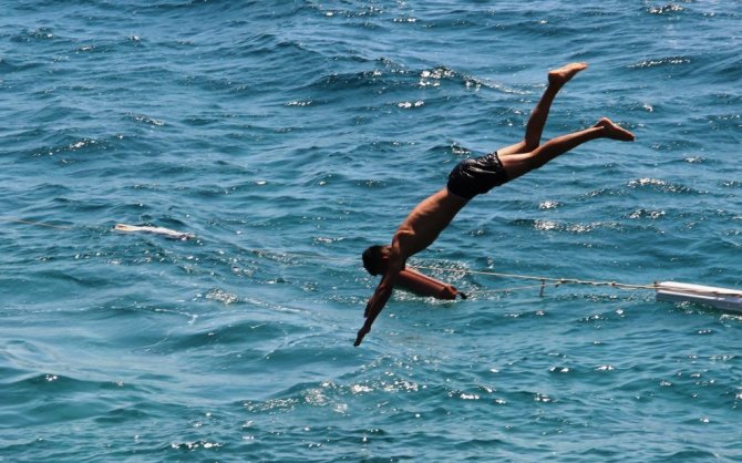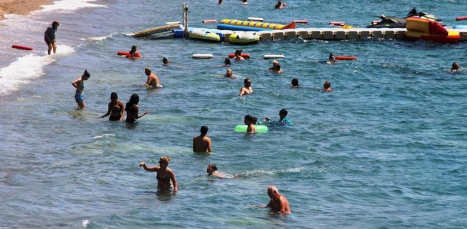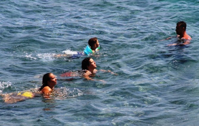 Turizmin göz bebeği Bodrum çöl sıcaklarına teslim oldu. Hava sıcaklığının 40 dereceyi bulmasıyla birlikte yerli ve yabancı turistler soluğu denizde aldı.