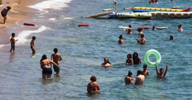 Hava sıcaklığının ani yükselişiyle birlikte yerli ve yabancı turistler sahillere akın etti. Yangında boşalan sahiller yeniden doldu taştı. Ege'nin serin sularına kendilerini bırakan yerli ve yancı turistler kavurucu sıcaklardan, denize girerek serinlemeyi tercih etti.