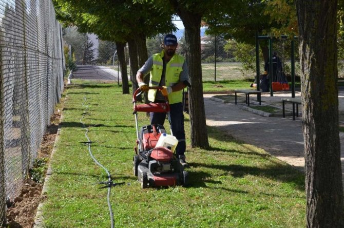 Bilecik'in Bozüyük ilçesinde yeşil alanlarındaki genel temizlik ve bakım çalışmalarına aralıksız olarak devam ediyor.