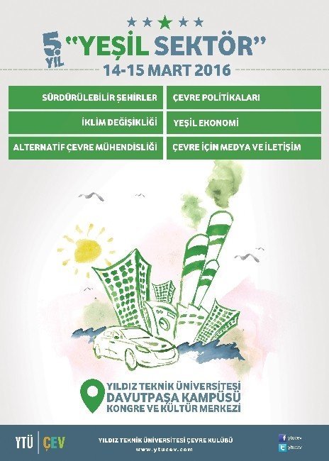 Sürdürülebilir bir yaşam için çalışanlar ile öğrenciler, Yıldız Teknik Üniversitesi Çevre Kulübü’nün 14-15 Mart 2016 tarihlerinde düzenleyeceği ‘Yeşil Sektör 2016’ seminerinde bir araya geliyor.