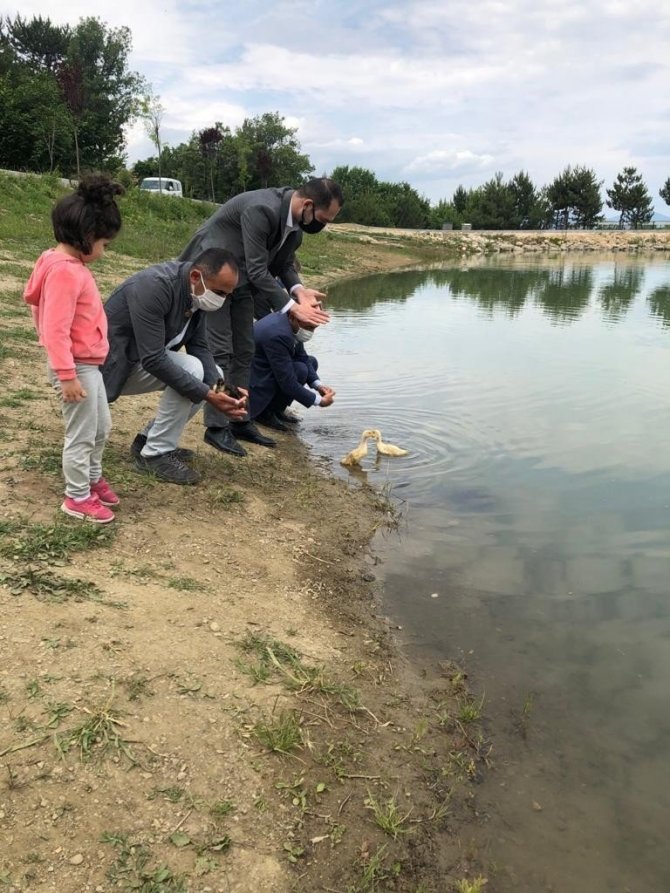 Çorum'un Laçin ilçesinde yer alan Yeşil Göl'e doğal yaşamı canlandırmak ve ziyaretçilerin ilgisini arttırmak amacıyla Laçin Kaymakamlığı tarafından ördek yavruları bırakıldı.