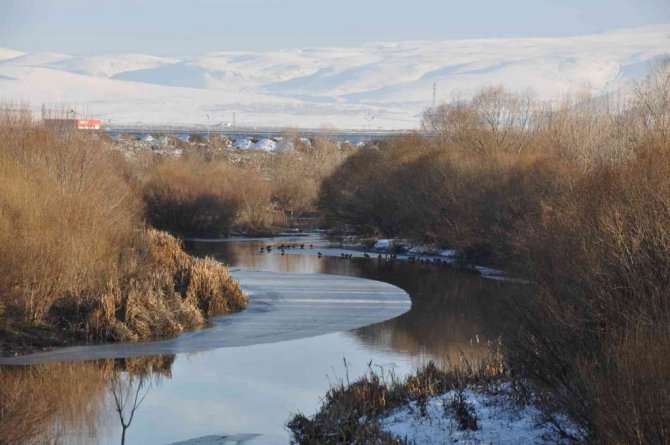 Kars'ta yaklaşık 160 kuş türünü barındıran Kafkas Üniversitesi Sulak Alanı, yeşilbaş yaban ördeklerine ev sahipliği yapıyor.