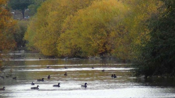 Yaklaşık 160 kuş türünü bünyesinde barındıran Kars Kafkas Üniversitesi Sulak Alanı'nı yeşilbaş yaban ördekleri mesken tuttu.