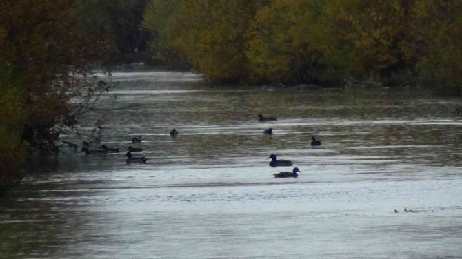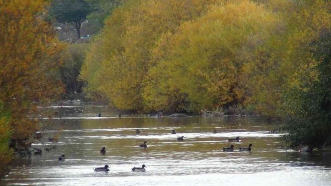 Kafkas Üniversitesi (KAÜ) yerleşkesinin ortasından geçen Kars Çayı'nı mesken tutan yeşilbaş yaban ördekleri, rahatça yaşamlarını sürdürüyor.