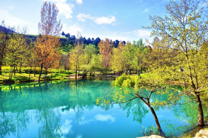 Kahramanmaraş'ın Tekir mahallesinde bulunan Yeşilgöz, suyunun rengi ve eşsiz doğası ile kendine hayran bırakıyor.