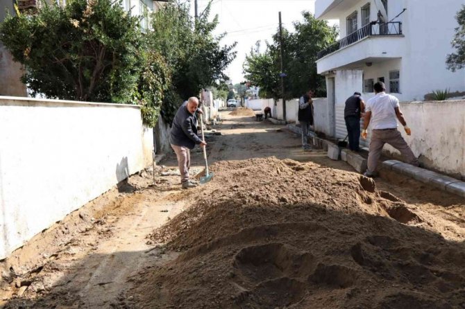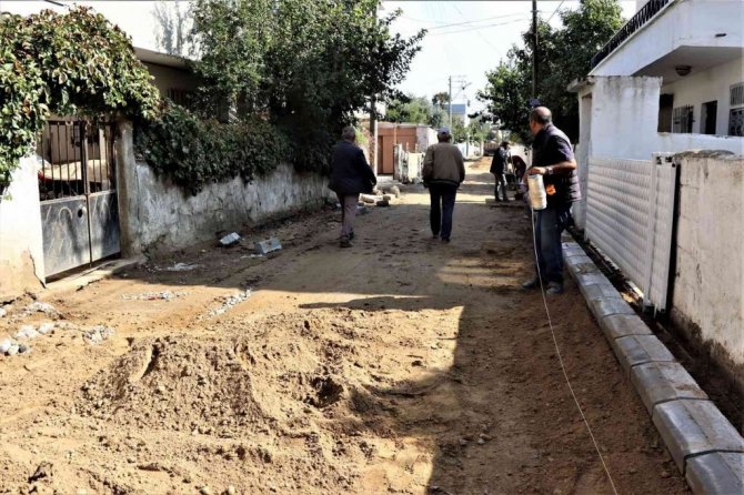 Nazilli Belediyesi ekipleri, alt yapı çalışmaları tamamlanan Yeşilyurt Mahallesi 1143 Sokak'ta parke taşı döşeme faaliyetlerine başladı.