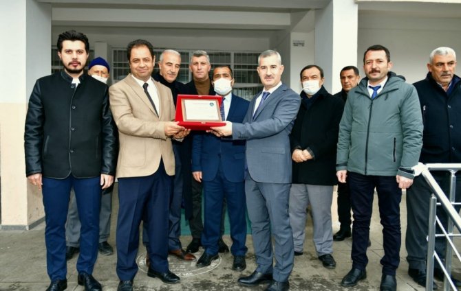 Yeşilyurt İlçe Milli Eğitim Müdürü Cemal Kalay, eğitime verdiği önem ve katkılarından dolayı Çınar'a teşekkür plâketi takdim etti.
