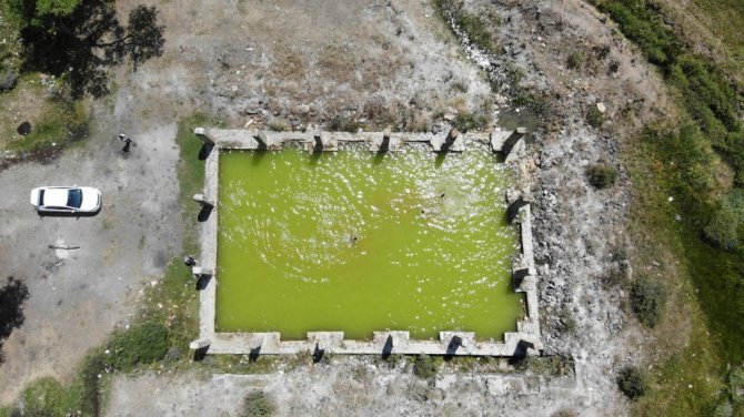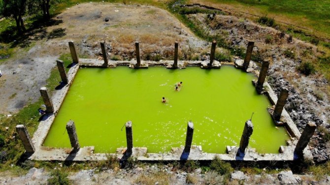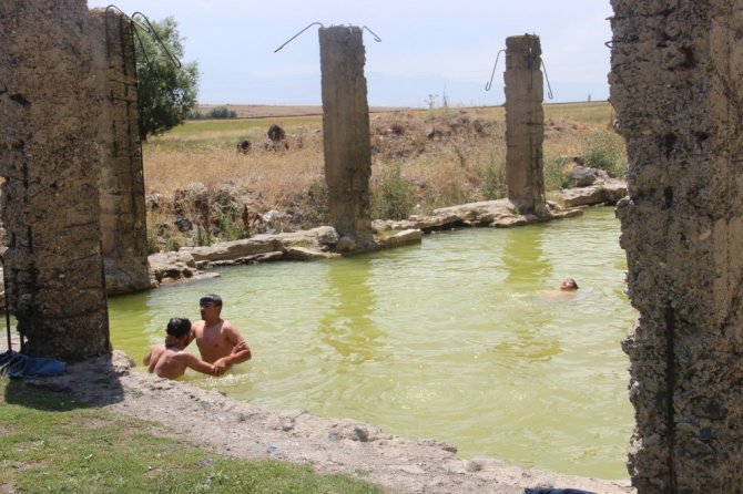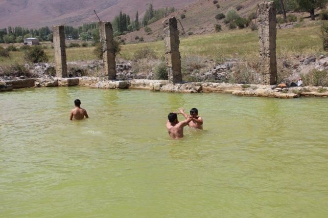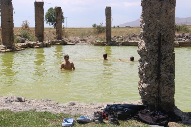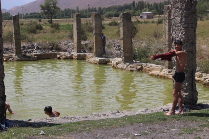 Erzurum'da yıllar içerisinde etrafını çevrelen duvarların yıkılmasıyla farklı bir görünüme sahip olan Akdağ Kaplıcaları soğuk ve şifalı suyuyla serinlemek isteyenlerin uğrak yeri haline geldi.