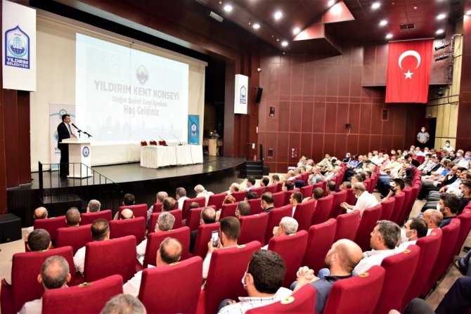'Ortak Akıl" vurgusu yapan Başkan Oktay Yılmaz, "Peygamber efendimiz, "istişare eden pişman olmaz" buyurmuştur. Biz de, Yıldırım'ı Yıldırımlılarla birlikte el ele yönetmek ve ilçemizde ortak aklı egemen kılmak için gayret ediyoruz. Bu doğrultuda haftanın 4-5 günü mahalle ve esnaf ziyaretleri gerçekleştiriyoruz. Hemşehrilerimizle iç içeyiz. Onların derdini, sıkıntısını, talebini, eleştirisini birinci ağızdan dinliyoruz. Hizmet ve projelerimizi vatandaşlarımızdan gelen taleplere göre şekillendiriyoruz. Yıldırım'ın gelişmesi noktasında sivil toplum kuruluşlarımız ve derneklerimizin ayrı bir önemi var. İlçemizdeki tüm STK ve derneklerle irtibat halindeyiz. Onlardan gelen talep ve önerileri titizlikle ele alıyoruz. Yıldırım'a ve Yıldırımlılara faydası olan her derneğin, her fikrin başımızın üstünde yeri var. Kurumlar, insan bedeni gibidir, şehrin bedenini inşa eder ama o şehre ruh veren şehrin insanı ve sivil toplumdur. Yıldırım'ın kalkınmasından gelişmesinden bahsedeceksek, bu ancak şehrin tüm dinamiklerinin inisiyatif alması ile mümkündür. Yıldırım'ı birlikte daha ileriye taşıyacağız" dedi. Güven tazeleyerek tekrardan Yıldırım Kent Konseyi Başkanlığına seçilen Mehmet Akif Bingöl, "Kent Konseyleri siyaset üstü bir yapıdır. Bünyesinde her ideolojiden, inançtan, sosyal statüden kişiler yer alır. Bu kişiler gönüllülük ilkesi doğrultusunda, insan hayatına ve şehrin estetiğine anlam ve değer katmak için çalışır" ifadelerini kullandı.