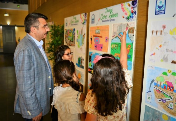 Yıldırım Belediyesi'nin 5 Haziran Dünya Çevre Günü kapsamında düzenlemiş olduğu yarışmada dereceye girenler ödüllerini Başkan Oktay Yılmaz'ın elinden aldı.