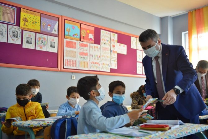 Konuşmaların ardından sınıfta öğrencilere kitap dağıtıldı.