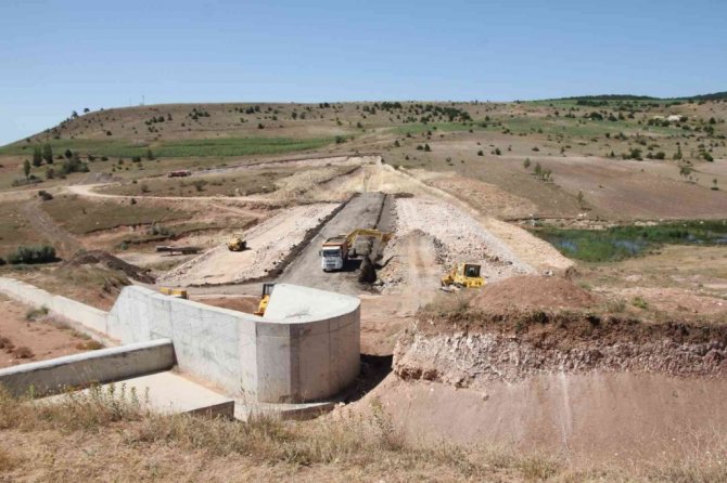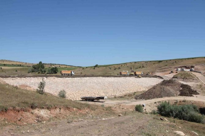 Devlet Su İşleri Genel (DSİ) Müdürlüğü tarafından Sivas'a yapılan Yıldızeli Kaleköy Göleti'nde çalışmalar son hızıyla devam ediyor.