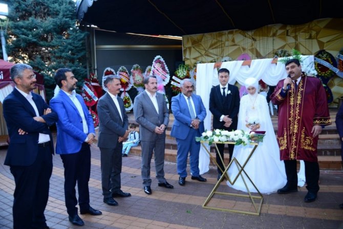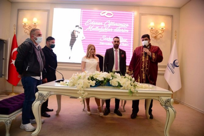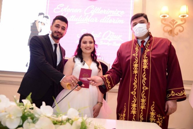 Başkan Oğuz, kıydığı nikahlarda kadına karşı şiddet olaylarına da dikkat çekerek, "Çiftlerimize, özellikle de damatlarımıza kadına karşı şiddet olaylarını anımsatarak, bu konuda hassasiyet göstermelerini istiyorum. Kadınlarımız bizim başımızın tacıdır. Onlara karşı her türlü şiddet olayının karşısındayız" dedi.