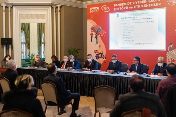 Toplantıda konuşan ATO Başkan Yardımcısı Temel Aktay, yeme-içme sektörünün salgın sürecinde en çok etkilenen ilk beş sektör içerisinde yer aldığını belirtti. Ankara Ticaret Odası'nın pandemi sürecinde üyeleri için yaptığı çalışmalar hakkında bilgi veren Aktay, "Gel-al veya paket servis gibi sistemler bütün işletmelerin alt yapısına uymadığı için işletmeleri kesin bir çözüme ulaştırmadı" diye konuştu.