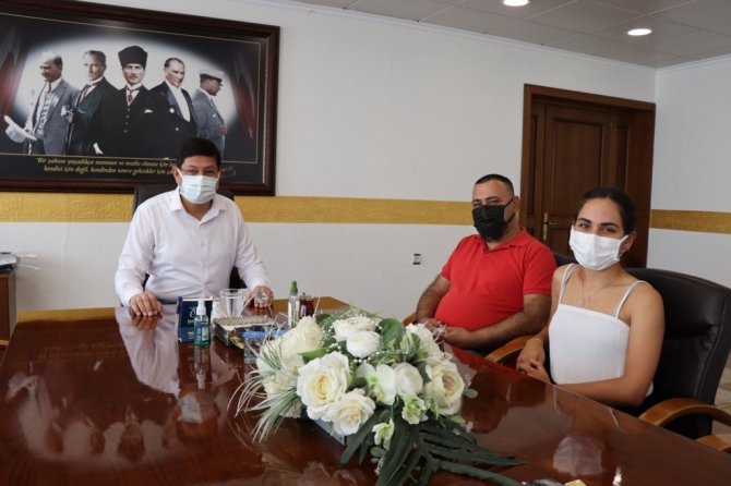 Yükseköğretim Kurumları Sınavı'nın Türkiye 3.'üncüsü Bengisu İpçi Nazilli Belediye Başkanı Kürşat Engin Özcan'ı makamında ziyaret etti. YKS sözelde Türkiye üçüncüsü eşit ağırlıkta da yine Türkiye dördüncüsü olan Bengisu İpçi, 5 Eylül Ortaokulu'nda Matematik Öğretmeni olan babası Özhan İpçi ile birlikte geldiği ziyarette sınava hazırlık süreci ve başarısının sırlarını Başkan Özcan ile paylaştı.