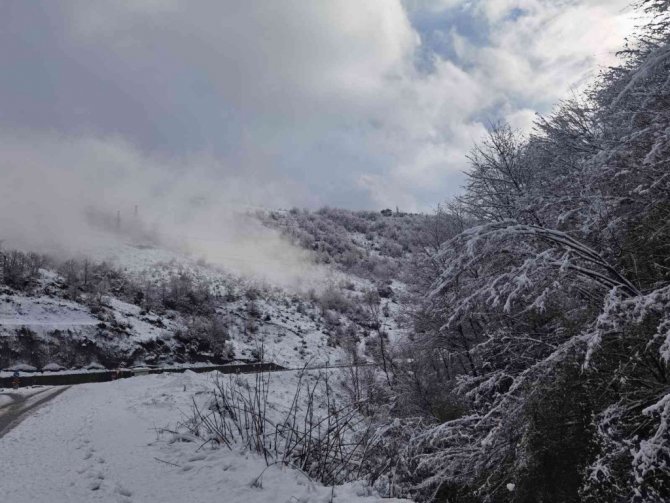 Zonguldak'ta dün gece saatlerinden itibaren başlayan kar yağışı yüksek kesimlerde etkili oldu.