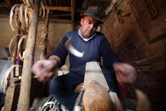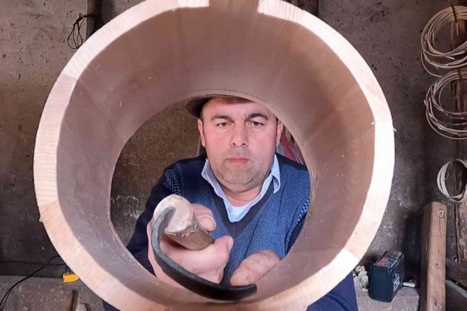 "İlk önce çubuğunu siliyoruz, sonra yarma işini yapıyoruz, sonra tahtanın içini siliyoruz, rendeye vuruyoruz, daha sonra diğer işlemleri gerçekleştiriyoruz. Günde 4-5 tane yapıyoruz. Ağacı ormandan getiriyoruz, oradan ağacı alıyoruz kurumaya bırakıp siliyoruz. Sildikten sonra işliyorsun. Tamamen doğal. Plastik kapta yoğurt yemektense bundan yemek daha iyi. Yoğurdun acı suyunu da çekiyor, yoğurda ayrı bir lezzet veriyor. Herkese tavsiye ediyorum."