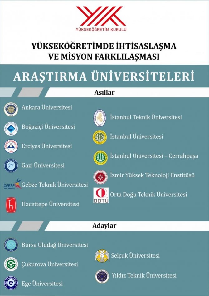 Proje kapsamında, Ankara, Boğaziçi, Erciyes, Gazi, Gebze Teknik, Hacettepe, İstanbul Teknik, İstanbul, İstanbul Üniversitesi Cerrahpaşa, Orta Doğu Teknik ile İzmir Yüksek Teknoloji Enstitüsü "araştırma üniversitesi", Bursa Uludağ, Çukurova, Ege, Selçuk ve Yıldız Teknik Üniversiteleri ise "aday araştırma üniversitesi" olarak belirlenmişti.