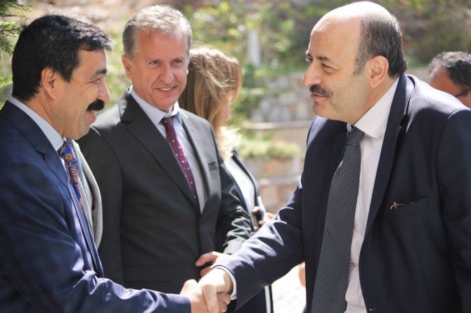 Türk Fizik Derneğinin Bodrum’da düzenlediği 34. Uluslararası Fizik Kongresi’nde ‘Onur Ödülü’ alan YÖK Başkanı Prof. Dr. Yekta Saraç, Muğla Sıtkı Koçman Üniversitesi Rektörü Prof. Dr. Hüseyin Çelik’i de ziyaret etti. Ziyaret sonrası Muğla Sıtkı Koçman Üniversitesi Rektörü Prof. Dr. Hüseyin Çelik, Aydın Adnan Menderes Üniversitesi Rektörü Prof. Dr. Cavit Bircan, Akdeniz Üniversitesi Rektörü Prof. Dr. Mustafa Ünal, Demokrasi Üniversitesi Rektörü Prof. Dr. Bedriye Tunçsiper, Dokuz Eylül Üniversitesi Rektörü Prof. Dr. Nükhet Hotar, Ege Üniversitesi Rektörü Prof. Dr. Necdet Budak, İzmir Yüksek Teknoloji Enstitüsü Rektörü Prof. Dr. Mustafa Güden, Katip Çelebi Üniversitesi Rektörü Prof. Dr. Saffet Köse, Mehmet Akif Ersoy Üniversitesi Rektörü Prof. Dr. Adem Korkmaz, Pamukkale Üniversitesi Rektörü Prof. Dr. Hüseyin Bağ ve TÜBİTAK Başkanı Prof. Dr. Hasan Mandal ile değerlendirme toplantısı yapan Saraç, toplantı öncesi gazetecilere açıklama yaptı. Temel bilimlerin ülkenin kalkınmasının temel dinamiği olduğunu belirten Prof. Dr. Saraç, “Şahsıma tevdi edilen ödül, Yüksek Öğretim Kurulunun bu konulara ilişkin yaptığı katkılara yönelik olmak üzere Yüksek Öğretim Kurulu adına aldım ben bu ödülü. Tabii bu mutluluk verici. Temel bilimler bu ülkenin kalkınmasının temel dinamiği. Bu bilimler ile matematik, fizik, kimya, biyoloji, bundan 5-6 sene önce gerçekten boş sınıflar ve sıfır kayıt olduğu dönemlerden mukayese etmek gibi olmasın mühendisliklerden bile daha iyi bir durum yakalayan ve her sene yeni bir ilgi ve alaka çeken programlar oldu. Bu bizi gerçekten mutlu ediyor” dedi.