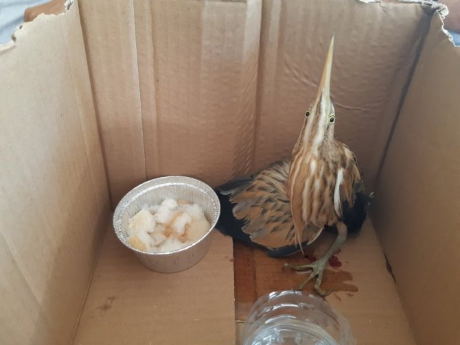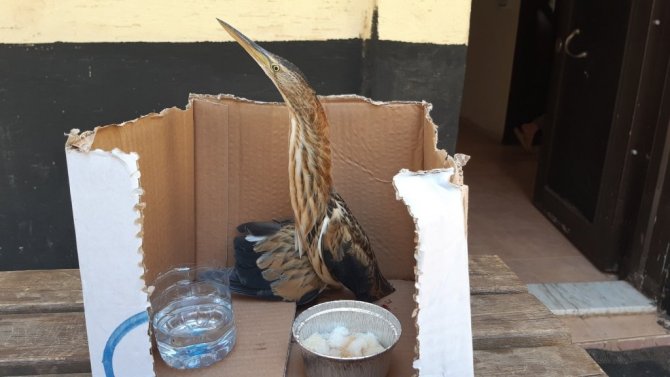 Gaziantep'in İslahiye ilçesinde yol kenarında kanlar içerisinde olan İran balıkçıl kuşu bulundu.