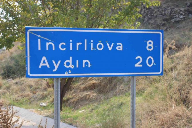 Aydın'ın kırsal mahallelerinde yollara yerleştiren trafik levhaları ile yol tabelaları eli silahlı magandaların hedef tahtası haline geldi.