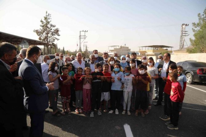 Gazaintep'in kadın belediye Başkanı Fatma Şahin, Karkamış ve Nizip ilçelerni birbirine bağlayan 3 kilometrelik yol, tamamlanan asfalt çalışmalarının ardından çocuklarle birlikte kestiği kurdela ile hizmete açtı.