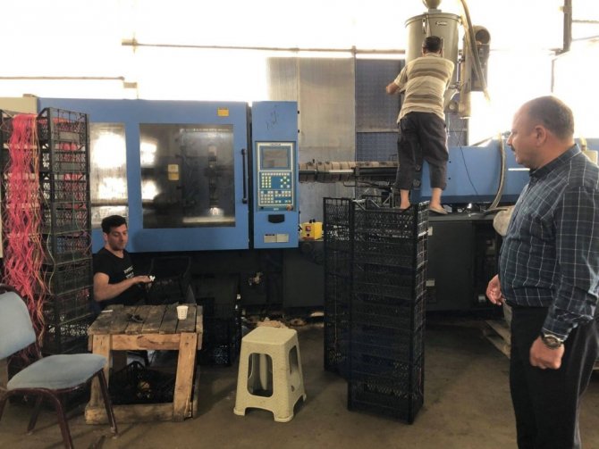Iğdır'ın Melekli Beldesi'nde Vedat Bağrı'ya ait soğuk hava deposu ve plastik kasa imalathanesi ziyaret edildi.