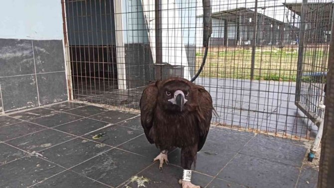 Edirne'nin Enez ilçesinde yorgun düşen akbaba, Keşan'da koruma altına alındı. Belediye Sokak Hayvanları Geçici Bakım Evi ve Rehabilitasyon Merkezi'nde misafir edilen vahşi hayvan toparlandıktan sonra tekrar doğaya salınacak.