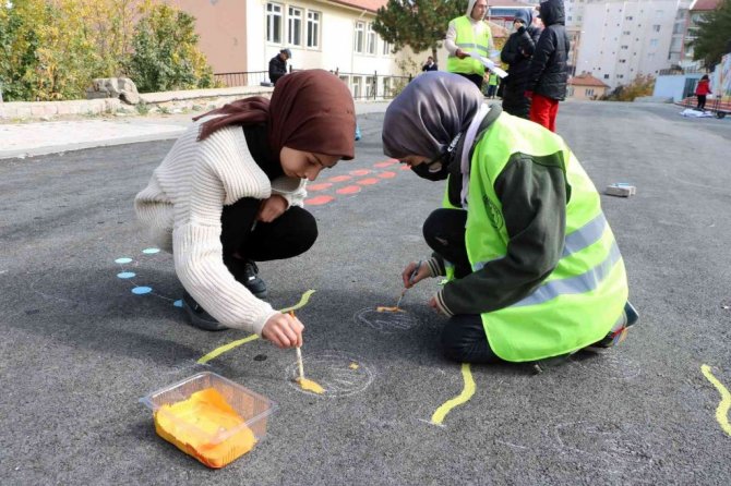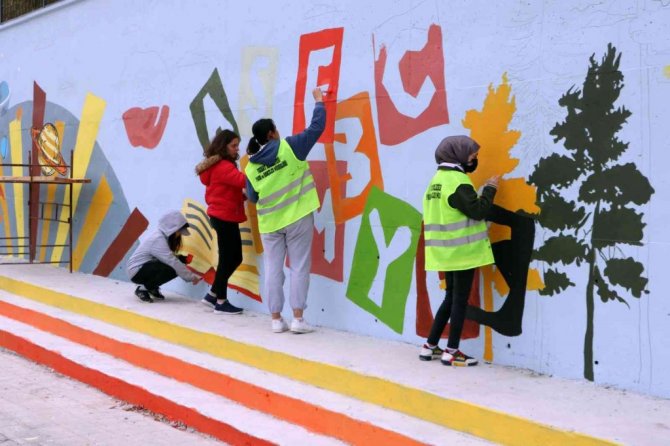Öğrenci Ayfernur Arslan da, "Yozgat Belediyesi ve Milli Eğitim Müdürlüğünün projesinde gönüllü olarak çalışıyoruz. Yerlere çocukların istifadesine sunmak üzere oyun alanları çiziyoruz, duvarlara çocukların dikkatini çekecek resimler yapıyoruz. Ben de güzel sanatlar lisesinde son sınıf öğrencisiyim, arkadaşlarımızla birlikte duvarlara resim çiziyoruz" dedi.