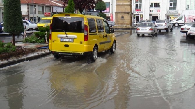 Kent merkezinde öğle saatlerinde yağmurun ardından aniden bastıran misket büyüklüğündeki dolu yağışı etkili oldu. Eriyen dolu ve yağmur suları nedeniyle cadde ve sokaklarda su birikintileri oluştu. Araç sürücüleri ve yayalar su birikintilerinin olduğu yollarda ilerlemekte güçlük çekerek zaman zaman zor anlar yaşadı.